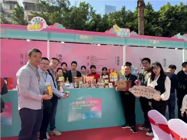12月2日,广东非遗手信发布会在广州市正佳广场举行。梅州市共有7项非遗产品入选2023年广东非遗手信名单,分别是尚记客家盐焗鸡、长乐玉液、逗乐大叔大坪豆干、马图绿茶、黄金玉香糕、黄金姜糖、《青花八珍味》餐具。