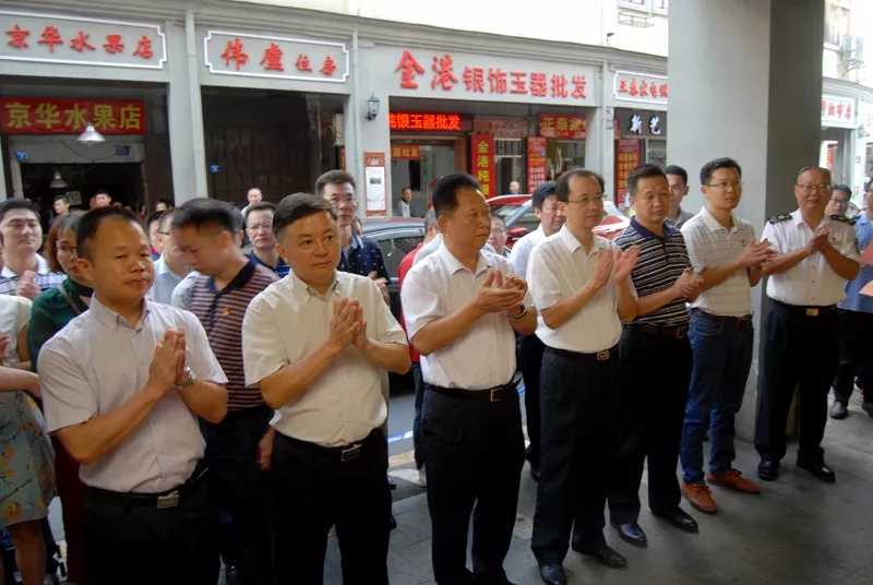 今天上午,梅江区在江北老城油罗街举行“十家老街名店”授牌仪式。区委书记朱国城、区人大常委会主任巫繁星,区政协主席赖经烈,区委常委、区委办主任王增文等参加活动。